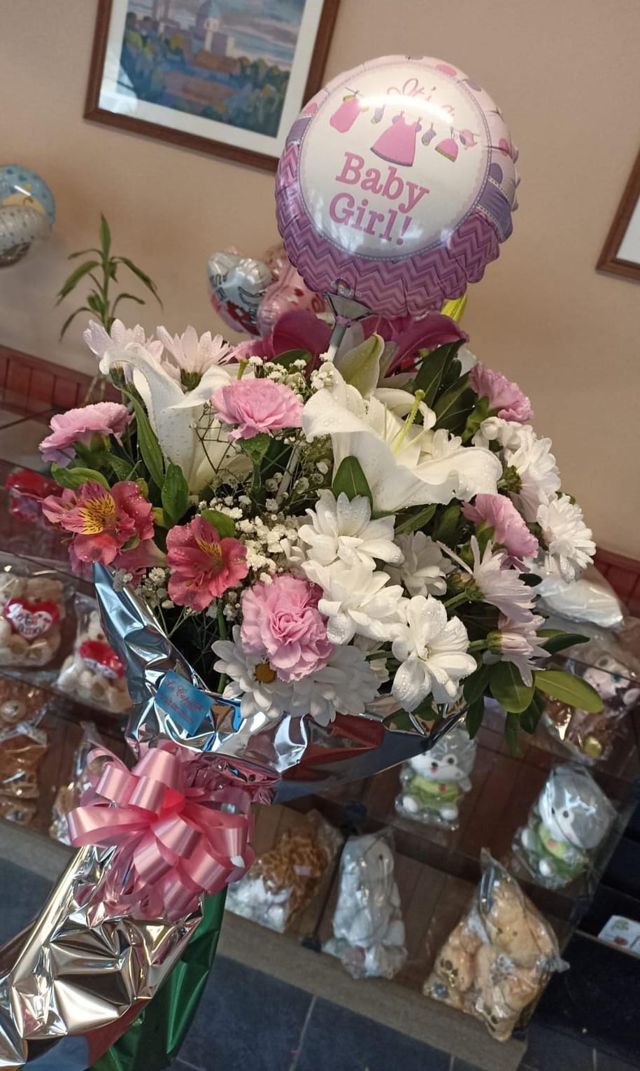 | Ramo de flores variadas con globo metalizado incluído |