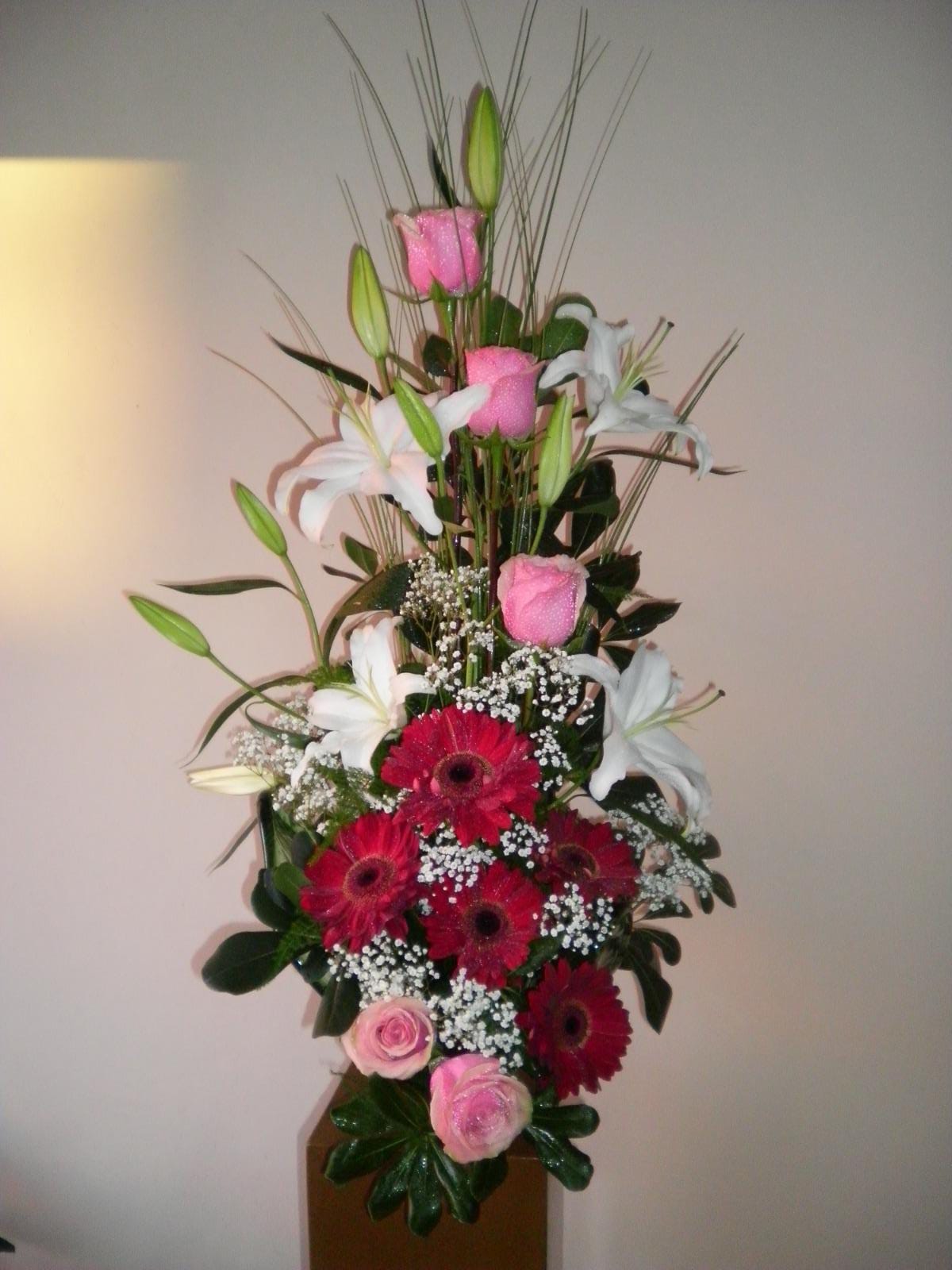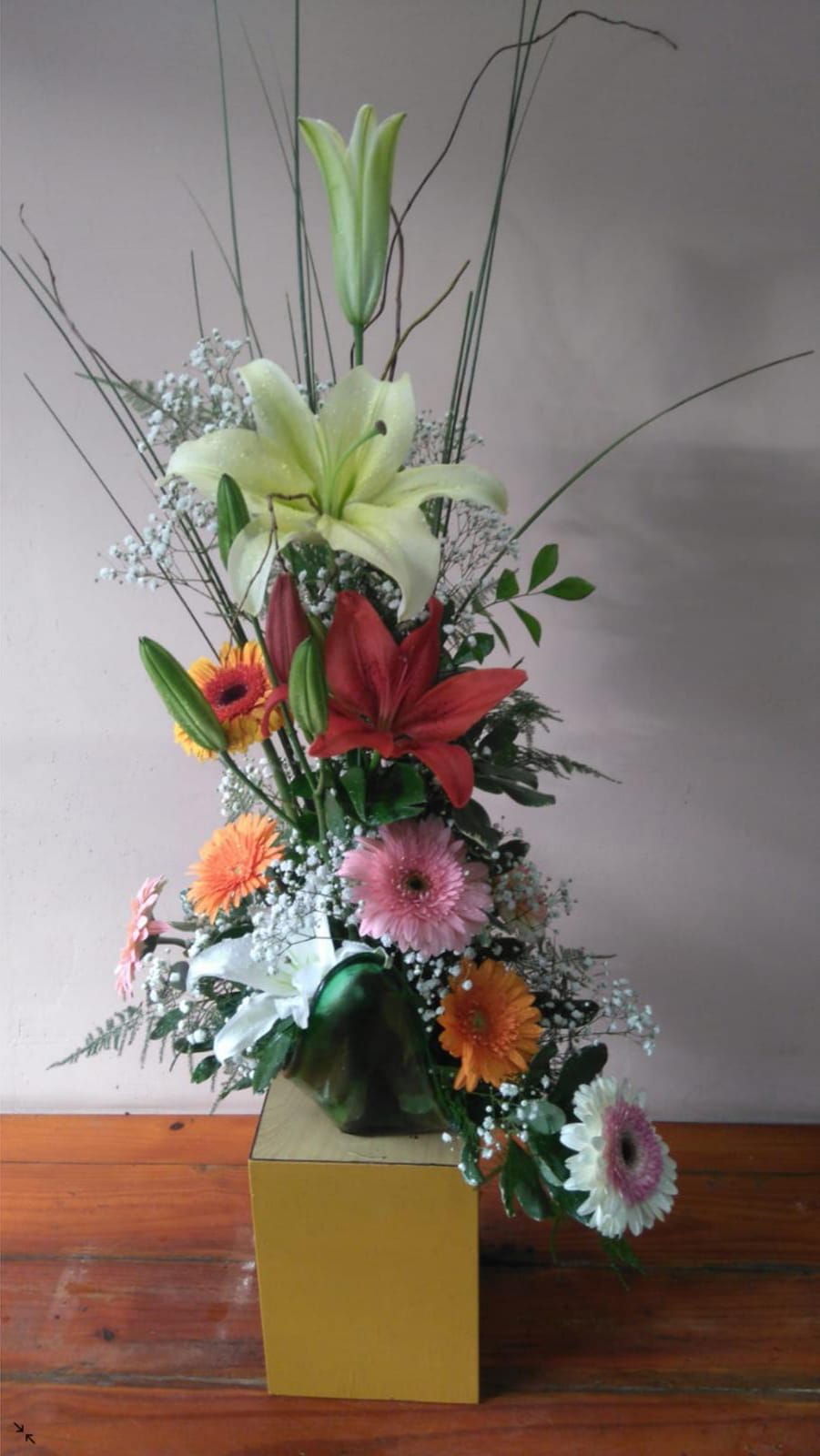 Arreglo floral compuesto por rosas , liliums y gerberas |