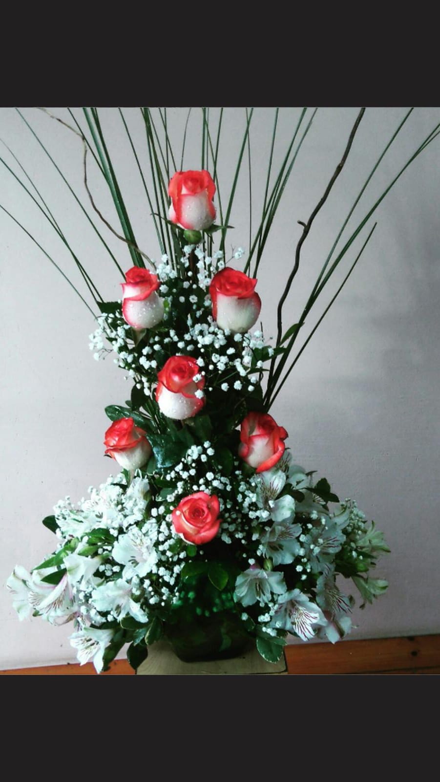 Arreglo floral con rosas y astromelias |